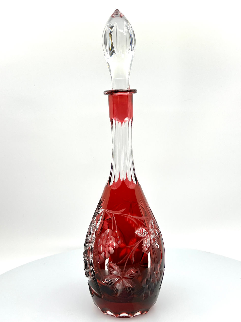 Nachtmann Mid Century Cranberry Cut Clear Crystal Decanter